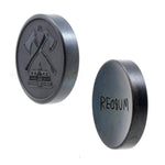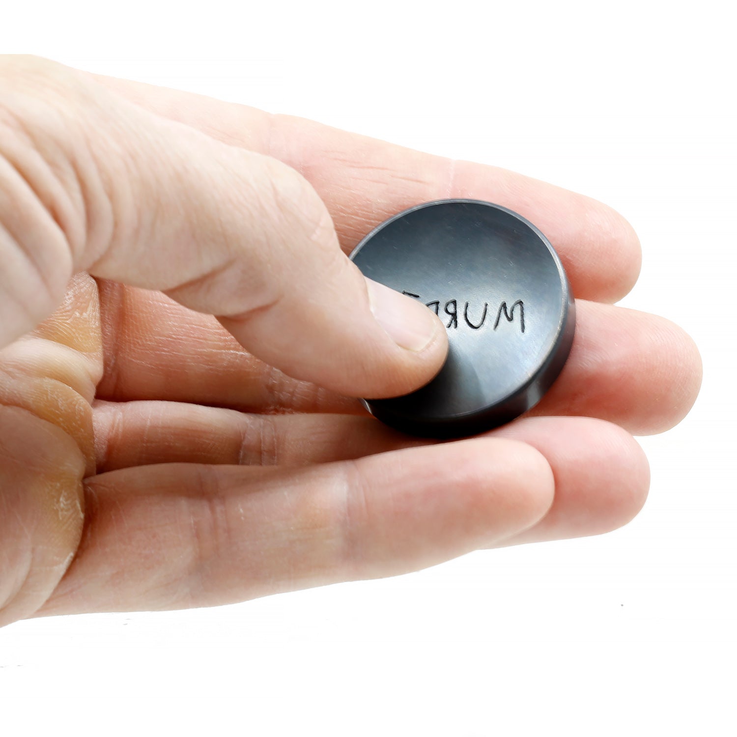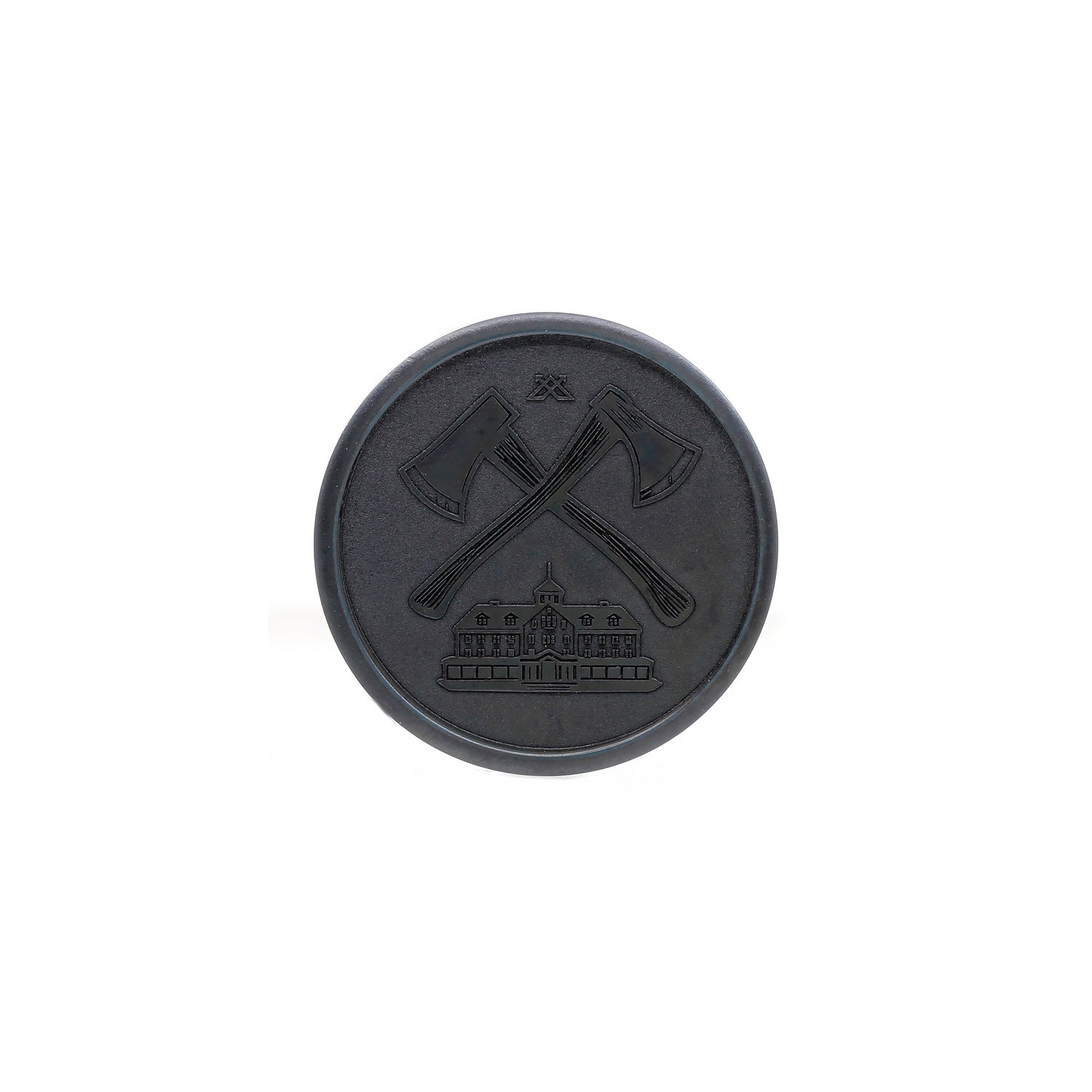 Minted and then laser engraved from solid Iron. Heat blackened, tumbled and oiled for a vintage look.