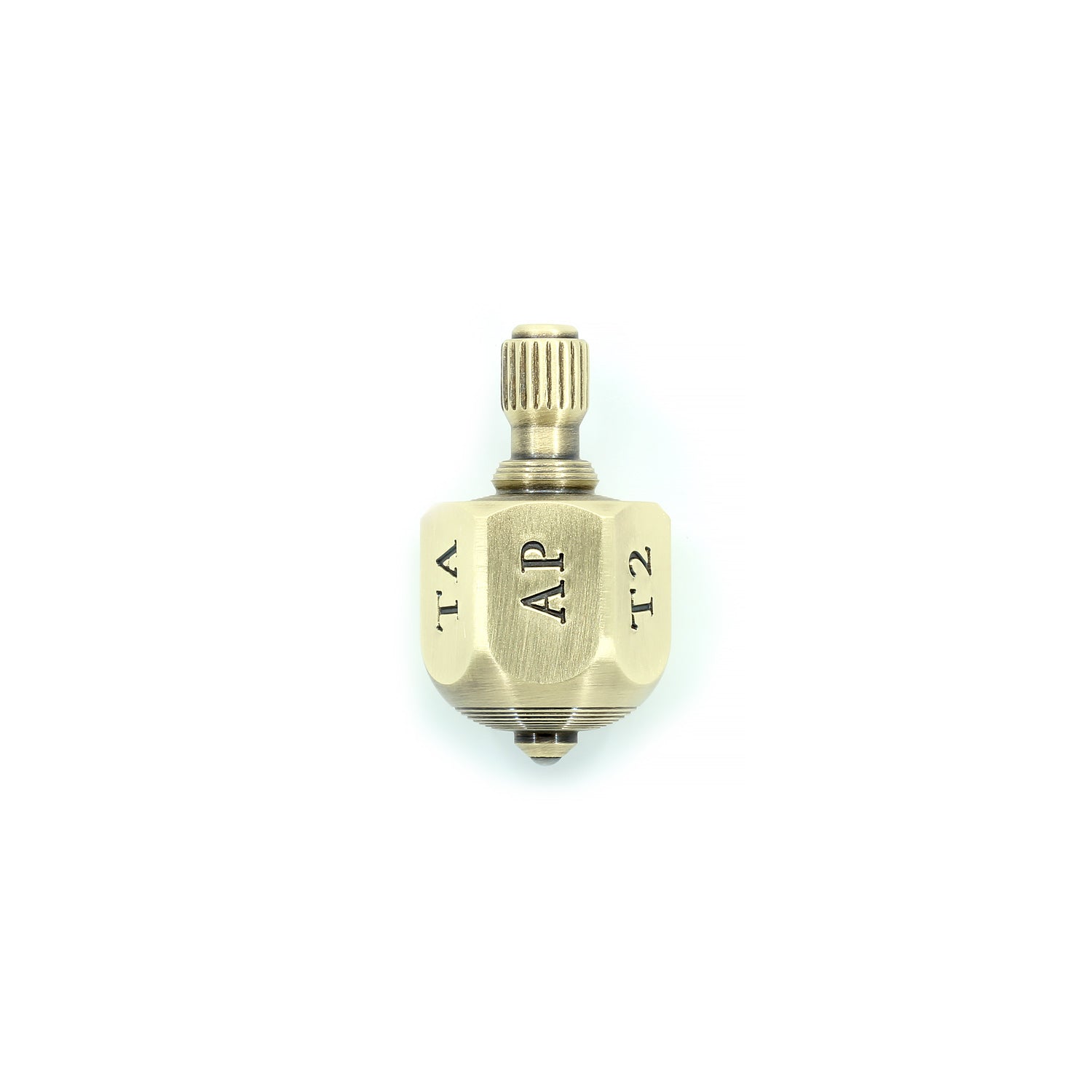 Each of our gambling teetotums are hand turned from a solid brass hex bar making each one unique. The top is stamped, oxidized and then polished but will patina nicely in time.